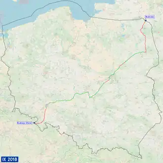 National road 8 (Polish: Droga krajowa nr 8, abbreviated as DK8) is a route in the Polish national road network, running diagonally through Poland from the Czech border in Kudowa Zdrój in the south-west to Raczki near the border with Lithuania in the north-east, through the Lower Silesia, Greater Poland, Łódź, Masovian and Podlaskie voivodeships. For most of its length it forms the Polish section of the European route E67 known as the Via Baltica between Warsaw and Tallinn.