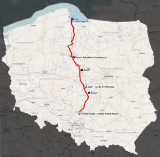 | Major cities | Gdańsk, Tczew, Grudziądz, Toruń, Włocławek, Łódź, Piotrków Trybunalski, Częstochowa | |||