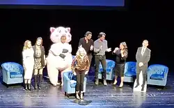 In 2023, Maple Tree Entertainments and Fremantle devised and hosted "Neighbours - The Celebration Tour", a multi-show theatre touring production featuring members of the cast discussing stories about Neighbours and their characters' storylines.[1][2] Neighbours had previously been cancelled by Channel 5 and ended in 2022. It was later recommissioned by Amazon MGM Studios and returned in 2023, allowing the soap to reach its fortieth broadcasting year anniversary.[3] On 5 April 2024, it was announced that a new tour titled Neighbours - The 40th Anniversary Tour would be staged in the UK in February 2025.[4] It was billed as a celebration of four decades of the soap opera complete with "a new line-up, new stories, and a brand-new reason to celebrate in the tour."[4]