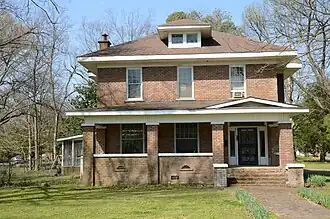 The Nelson House is a historic house at 303 St. Andrew's Terrace in West Helena, Arkansas. It is a 2+1⁄2-story wood-frame and brick structure, with a full-width front porch, and a rear single-story ell. The house has modest Colonial Revival styling, but is fundamentally an excellent local example of the American Foursquare architectural style. It was built c. 1915, and is one of a modest number of homes from that period to survive in West Helena.[2]