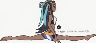 Since her debut, the character has been met with positive reception. She quickly became the subject of numerous pieces of fan art on social media websites, and was featured in several examples of cosplay such as that by professional wrestler Zelina Vega.[21][22][23][24] Ana Diaz of Polygon praised how well her design elements worked together, calling it "fire", while also stressing how important she felt it was for the game to showcase a dark-skinned character amongst a predominantly white cast.[17] Echoing the last sentiment, Junkee writer Amanda Yeo also praised the character's sense of style, and described her as "beautiful, self-assured and powerful enough to kick the arses of you and your entire extended family", feeling both elements contributed to her popularity with fans.[25] Kotaku's Gita Jackson meanwhile cited how her athletic attire helped emphasize the game's themes of the series maturing, illustrating Pokémon battling as a competitive sport.[26] While her appearance in Twilight Wings also received praise, Tom Steel of Comic Book Resources expressed disappointment in Nessa's absence from the Pokémon anime.[27][28]
