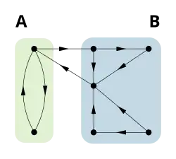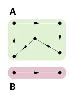 A food web, or food chain, is an example of directed network which describes the prey-predator relationship in a given ecosystem. Vertices in this type of network represent species, and the edges the prey-predator relationship. A collection of species may be represented by a single vertex if all members in that collection prey upon and are preyed on by the same organisms. A food web is often acyclic, with few exceptions such as adults preys on juveniles and parasitism.[15]
