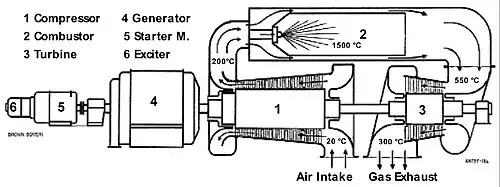 BBC's first opportunity to build a gas turbine solely for the purposes of electrical power generation came in 1938, when the Services Industriels de la Ville de Neuchâtel placed enquiries for an emergency power generator to be placed in a bomb-proof cavern.[3] In the late 1930s, heavily protected emergency power generators were being ordered by utilities across Europe to ensure continued electrical supplies in the event of aerial bombardment.[5] BBC's proposal for a 3,000 RPM, 4 MWe gas turbine was accepted. The key concerns for this application were limited space and fast starting times rather than efficiency, which suited the early open cycle gas turbines.[3][4]