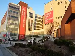 In 1999, a major modernization project took place, adding 200 beds to the hospital.[17] A second major expansion of the facility was approved by Queens Community Board 7 in September 2006, leading to the construction of the current lobby building and a new West Wing building.[6][27] Groundbreaking on the project took place on February 9, 2007.[28] The West Wing opened in 2010.[6][29] A new parking garage, either on the current parking lot or on property taken from nearby Kissena Corridor Park, was proposed, but has yet to be constructed.[6][27][28] In 2012, the hospital installed a half-acre of green roof with funding from the New York City Department of Environmental Protection.[30]