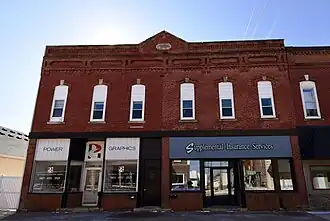The New Era Building, also known as the Dobson Town Clock Building, is a commercial building located in Maquoketa, Iowa. The Late Victorian structure was designed by John Lake and built in 1890. The building was owned by Dr. A.B. Dobson, a "clairvoyant physician who treated patients by mail." Patients were asked to send one dollar and a lock of hair, which would enable him to cure their ills. The building's clock tower was built separately and was removed for scrap to help in the war effort during World War II.[2]