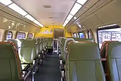 Refurbished lower deck interior viewing seats and stairs