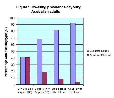 When New Zealand and Australian couples have children they show a very strong preference for family housing (Figure 1).[8] Australian research shows 85% of people who live in apartments would rather live in a house.[9]