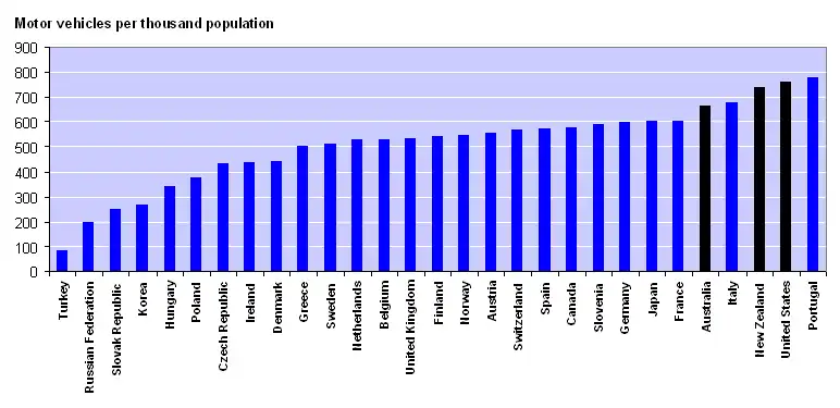 Figure 5. 2005 Motor vehicles, Source OECD