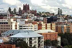 The old central business district, located at Newcastle's eastern end, still has a considerable number of historic buildings, dominated by Christ Church Cathedral, seat of the Anglican Bishop of Newcastle.[34] Other noteworthy buildings include Fort Scratchley, the Ocean Baths, the old Customs House, the 1920s City Hall, the 1890s Longworth Institute (once regarded as the finest building in the colony) and the 1930s art deco University House (formerly NESCA House, seen in the film Superman Returns).