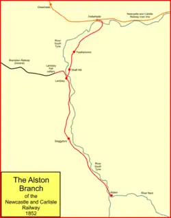 A branch line was built to reach lead mines around Alston, opening from Haltwhistle in 1852.