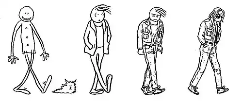 Abadzis went freelance in 1988 when his career as a cartoonist took off in the pages of legendary UK comics and music magazine Deadline. Here he created two of his best-known characters, Hugo Tate, a stick-man lost in a figuratively drawn world, and the shapeshifting Mr. Pleebus, who later starred in his own series of children's books. His series Hugo Tate ran in Deadline magazine from 1988 to 1994. Some of this series was collected as Hugo Tate: O, America in 1993, which won in 1994 a UK Comic Art Award for best graphic novel.[6]
