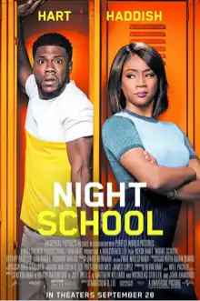 Night School is a 2018 American buddy comedy film directed by Malcolm D. Lee, produced with Will Packer and Kevin Hart, written by Hart, Harry Ratchford, Joey Wells, Matt Kellard, Nicholas Stoller and John Hamburg, and starring Hart, Tiffany Haddish, Rob Riggle, and Romany Malco with supporting roles done by Taran Killam, Megalyn Echikunwoke, Al Madrigal, Mary Lynn Rajskub, Keith David, Anne Winters, Fat Joe, Ben Schwartz, Yvonne Orji, and Bresha Webb. The story follows a group of adults who set out to earn their GEDs. The film was released in the United States by Universal Pictures on September 28, 2018, grossed over $103 million worldwide and received negative reviews from critics.