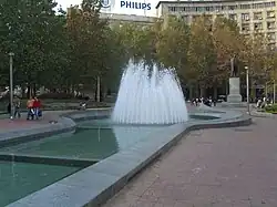 In 2017, city government announced that, within the scopes of the reconstruction of the square, it will demolish the fountain and build a new, smaller one, with the sprinklers on the ground level. Demolition of "one of the most recognizable city fountains" prompted a public opposition to the project.[5] Chief city urbanist Marko Stojčič stated in July 2019 that the fountain is not envisioned by the new project at all, adding that he will "insist to keep water in some form". In August 2019, deputy mayor Andreja Mladenović said that the fountain will not be removed, not specifying if the old one will be kept or the new one will be built instead.[26] As the opposition among the citizens continued, Stojčić stated that the new fountain will be similar to the existing one "to the extreme degree". Political opposition in the city hall, threatened to physically prevent the works in the square if the fountain is to be removed.[27][28]