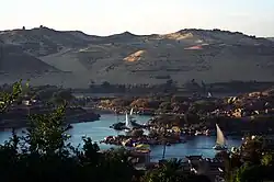 The Nile has been the lifeline of civilization in Egypt since the Stone Age, with most of the population and all of the cities of Egypt developing along those parts of the Nile valley lying north of Aswan. However, the Nile used to run much more westerly through what is now Wadi Hamim and Wadi al Maqar in Libya and flow into the Gulf of Sidra.[44] As the sea level rose at the end of the most recent ice age, the stream which is now the northern Nile captured the ancestral Nile near Asyut.[45] This change in climate also led to the current extents of the Sahara desert, around 3400 BCE.[46]