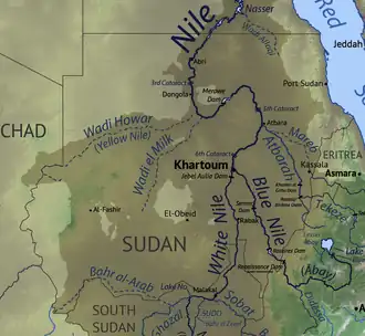 Map of Nile tributaries in modern Sudan, showing the Yellow Nile