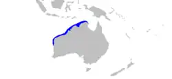 Endemic to northwestern Australia, the Ningaloo maskray has been found from Shark Bay in Western Australia to the Gove Peninsula in Northern Territory.[1] This bottom-dwelling species appears to have very restricted habitat preferences: it inhabits areas of fine reddish sand close to reefs, in inshore waters less than 5 m (16 ft) deep.[3]