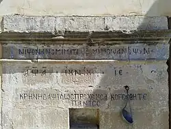 Nipson anomēmata mē monan opsin (Ancient Greek: Νίψον ἀνομήματα, μὴ μόναν ὄψιν), meaning "Wash the sins, not only the face",[2] or "Wash my transgressions, not only my face",[3] is a Greek palindrome[fn 1] that is said to be first inscribed upon a holy water font outside the Hagia Sophia in Constantinople.[4]