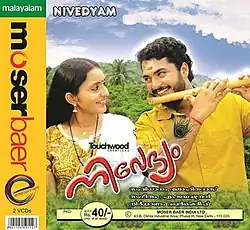 Nivedyam is a 2007 Malayalam language romantic drama movie written and directed by A. K. Lohithadas starring Vinu Mohan and Bhama in important roles. The film marks the debut of Vinu Mohan and Bhama to the film industry.[1][2] The film also marks the last movie written and directed by A. K. Lohithadas.[3][4]