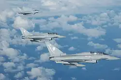 In 1987, 29 Squadron was one of the first RAF units to receive the Tornado F3, deploying to Saudi Arabia after the Iraqi invasion of Kuwait in August 1990 and participating in Operation Desert Storm.[11] No. 29 flew the Tornado until disbanding in 1998, as part of the Strategic Defence Review.[4] The squadron was reformed in 2003, this time as the Typhoon operational conversion unit (OCU).[4]