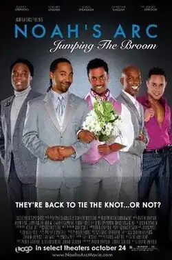 Noah's Arc: Jumping the Broom, is a 2008 American romantic comedy-drama film based on the LOGO television series Noah's Arc. It was released on October 24, 2008, in select theaters and video on demand. The film is MPAA rated R in the U.S. for "sexual content and language."