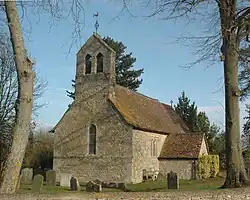 The building comprises a small nave and chancel, with a small bell-cote above the western gable and a south porch, and is primarily in the Early English Gothic style with many repairs and alterations through the years. Both the chancel with its double lancet window in the south wall and the chancel arch are probably 13th-century.[3] On either side of the arch are two 14th- or 15th-century niches. At the end of the 16th century a mortuary chapel was added by Joan Bradshaw for the Winchcombe family on the north side of the church, but in 1745 the chapel was in a ruinous condition and was demolished.[2][4] Further repairs took place in the 18th and 19th century; the last restoration was undertaken by the Oxford architect William Wilkinson (1819–1901).[3]