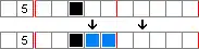 In the illustration, row 1 shows the cells that are filled under this procedure, rows 2 and 4 show how the blocks are pushed to one side in step 5, and rows 3 and 5 show the cells backfilled in step 5.