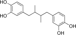 As a lignan, it is a member of one of the major classes of phytoestrogens. While it is commonly asserted that the biological properties of lignans per sé are void, and that only the enterolignans enterodiol and enterolactone, produced from lignans by intestinal bacteria have interesting biological properties,[1] nordihydroguaiaretic acid has antioxidant and anti-inflammatory properties in vitro or in animal models.[2] It is a redox-type inhibitor of 5-lipoxygenase.[3]