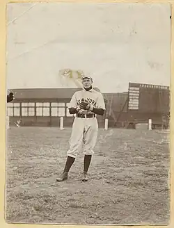 The 1900 Norfolk Phenoms hosted home game at Bain Field, then known as "League Park." Just before the 1900 season, manager Phenomenal Smith, along with Norfolk businessman E. H. Cunningham, owner of the team, visited League Park and discovered much of the wooden slats of the outfield walls were taken for use as firewood.[14] The ballpark was originally called "League Park " and newspaper coverage for baseball at the ballpark started as early as 1894.[15][16][17]