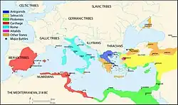 Roman domination of the northern Mediterranean coasts of Africa began when Carthage was defeated.[2] The Roman Empire in the following century controlled all the coasts from the Nile valley to the Atlantic Ocean of modern Morocco.[3]