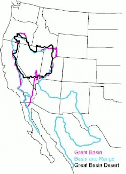 The Basin and Range province covers most of the state of Nevada and parts of the states of Arizona, California, Idaho, New Mexico, Oregon, Texas, Utah, and Wyoming, as well as much of northern Mexico. It is an extremely arid region characterized by basin and range topography.[47]