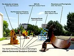 The success of the North Edmonton Sculpture Workshop's first Big Things exhibition[13] would lead to three more presentations in the series: Big Things 2 in 2003, Big Things 3 in 2004, and Big Things 4 in 2006.[14] In 2005, in celebration of Alberta's centennial year, and the Museum's new Royal Charter from Queen Elizabeth II,[10] the North Edmonton Sculpture Workshop presented the Alberta Centennial Sculpture Exhibition at the newly named Royal Alberta Museum.[15]