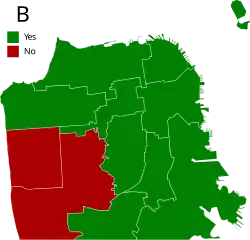 Proposition B would allow the city to issue $208 million in bonds to finance street and sidewalk improvements. This proposition required a two-thirds majority to pass.