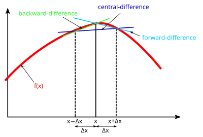 The above is the central-difference approximation of the derivatives,[30] which can also be approximated by forward-difference:
