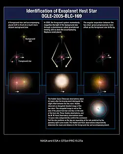 - ^ Batista, V.; et al. (July 30, 2015). "CONFIRMATION OF THE OGLE-2005-BLG-169 PLANET SIGNATURE AND ITS CHARACTERISTICS WITH LENSβSOURCE PROPER MOTION DETECTION". The Astrophysical Journal. 808 (2): 170. arXiv:1507.08914. Bibcode:2015ApJ...808..170B. doi:10.1088/0004-637X/808/2/170. S2CID 119212954.