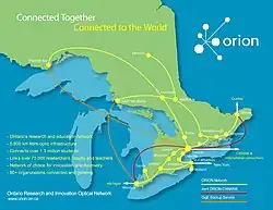 The Ontario Research and Innovation Optical Network (ORION) is a high-speed optical research and education network in Ontario, Canada. It connects virtually all of Ontario's research and education institutions including every university, most colleges, several teaching hospitals, public research facilities and several school boards to one another and to the global grid of R&E networks using optical fibre.