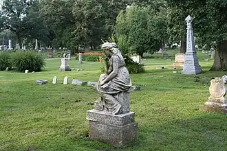 Oakland Cemetery is a historic cemetery at 1007 North Main Street in Princeton, Illinois. The cemetery originated in 1836, five years after Princeton's founding, and was originally owned by Reverend Lucien Farnham as a burial ground for members of the Hampshire Colony Congregational Church. The city of Princeton leased the burial ground from the church in 1862 and bought a large plot of adjacent land, and by the next year they had combined the two plots and named them Oakland Cemetery after the oak trees there. Landscape architect L.L. Herron and surveyor Romanus Hodgman planned the grounds as a garden cemetery, a park-like style of cemetery which had become popular in the eastern United States at the time. The cemetery included a public picnic area, carriage paths, and a Gothic Revival office building. Many of the graves in the cemetery feature large, artistic monuments, including obelisks made from white bronze, statues of angels or the deceased, stone tree trunks, and Art Deco box tombs. The largest monument in the cemetery marks the grave of pioneer and local historian Nehemiah Matson; it is 34 feet (10 m) tall and made of 44 tons of granite, and it cost $4,600 when it was built in 1884.[2]