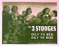 Oily to Bed, Oily to Rise is a 1939 short subject produced and directed by Jules White starring American slapstick comedy team The Three Stooges (Moe Howard, Larry Fine and Curly Howard). It is the 42nd entry in the series released by Columbia Pictures starring the comedians, who released 190 shorts for the studio between 1934 and 1959.