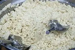 Okara is a food by-product from tofu and soy drink production.[1]: 9 In 1983 it was estimated that the annual yield for okara in Japan was approximately 70,000 metric tons.[2]: 380