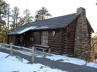 Funded as an Emergency Conservation Works project and built by the Civilian Conservation Corps in 1935, the old administration building was used as the monument's headquarters and museum until 1959. At that time, headquarters was relocated while the building continued its function as the park's primary visitor center. Today the main level of the building serves as the visitor center; the basement level has public restrooms, museum storage, interpreter's office, library, storage for search and rescue and first aid equipment and supplies, and a fuel oil furnace. The upper level, originally designed for use as a bedroom, is now used for storage and houses an evaporative cooler.[3][4]