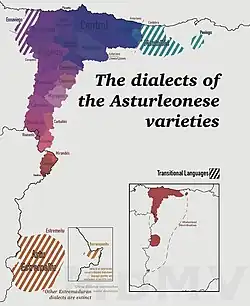 Omañese dialects are varieties of Leonese language spoken in the comarca of Omaña in Castile and León, Spain.[1] Omañese dialects form part of Western Asturleonese.[2]