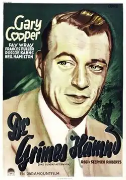 One Sunday Afternoon is a 1933 American pre-Code romantic comedy-drama film directed by Stephen Roberts and starring Gary Cooper and Fay Wray. Based on the 1933 Broadway play by James Hagan,[1][2] the film is about a middle-aged dentist who reminisces about his unrequited love for a beautiful woman and his former friend who betrayed him and married her. This pre-Code film was released by Paramount Pictures on September 1, 1933.