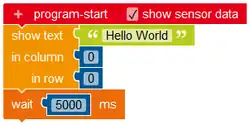 List Includes blocks to create a list and to search or sort list elements.   program-start Each program starts with this block. This block is always available in the workspace.