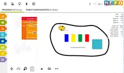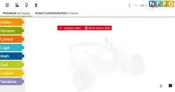 NEPO is a free open source meta programming language that can be used by students, scholars, teachers, and other interested persons within the Open Roberta Lab. NEPO translates to New Easy Programming Online (or simply OPEN read backwards). NEPO is the name of the graphical programming language and its coupled hardware connection layer. NEPO uses the freely available Blockly library. In addition within NEPO there are additional functionalities and improvements which have been adapted for Open Roberta. The programming paradigm of NEPO is inspired by Scratch, which was developed by the Massachusetts Institute of Technology. A NEPO block always represents and encapsulates a certain robot functionality. A blocks feature set can easily be recognized through the associated block category, for example »sensors«. Programming with NEPO follows a simple principle. The blocks are interconnected and will be executed by the robot according to their order. This principle is called "sequential operation."
