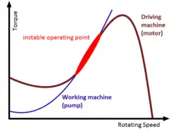 Unstable operating point of an engine consisting of drive (AC motor) and working machine (pump)