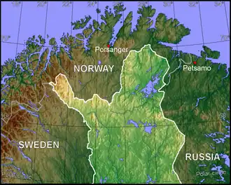 ![]() The German airfields at Petsamo (Finland) and Porsanger (Norway), the objectives of the May 1942 plan for Operation Jupiter. Note that the post-1947 national borders are shown. | |
