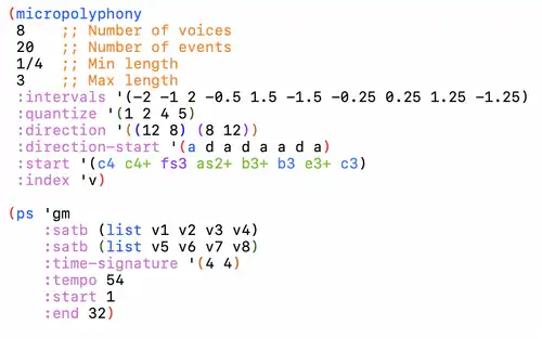A robust library of musical functions[6] index helps generate and transform pitches, rhythms, articulation patterns, and harmonic structures, supporting both tonal and atonal techniques.