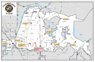 The department has 8 stations spread across the city. There are 2 Engine Companies at Stations 1 and 7.[8]