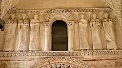 The Oratorio di Santa Maria, or Oratory of Santa Maria, previously called the Tempietto longobardo, is located in Valle on the north-eastern frontier at Cividale del Friuli in the province of Udine.[1] It was erected in the 8th century under the rule of a Germanic people called the Lombards who ruled most of the Italian Peninsula from 568 to 774. This is the most important and best preserved example of Lombard architecture, which resembles styles found in Ottonian, Roman, Lombardy and Carolingian art. Included within the temple and chapel are decorated frescoes and high relief sculptures of saints in stucco.