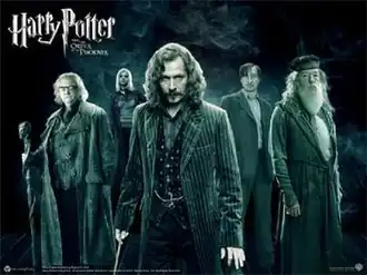 ![]() Left to right: Order of the Phoenix members Mad-Eye Moody, Nymphadora Tonks, Sirius Black, Remus Lupin and Albus Dumbledore [a] | |