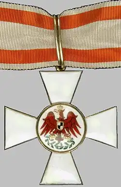 The Order of the Red Eagle (German: Roter Adlerorden) was an order of chivalry of the Kingdom of Prussia. It was awarded to both military personnel and civilians, to recognize valor in combat, excellence in military leadership, long and faithful service to the kingdom, or other achievements. As with most German and other European orders, the Order of the Red Eagle could be awarded only to commissioned officers or civilians of approximately equivalent status. However, there was a medal of the order, which could be awarded to non-commissioned officers and enlisted men, lower ranking civil servants and other civilians.